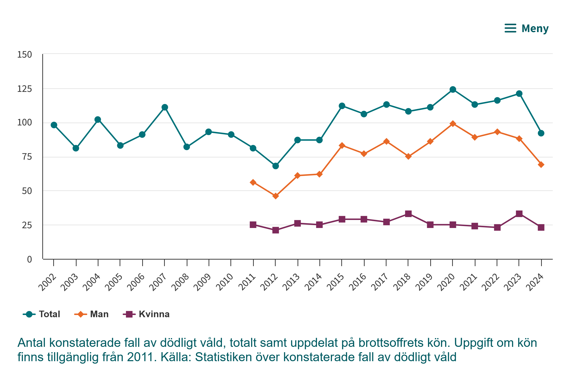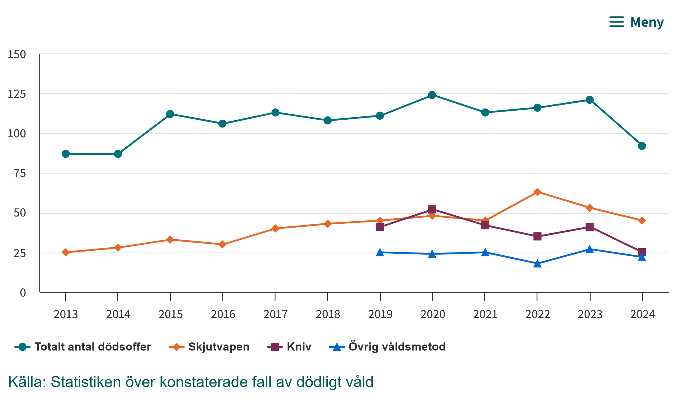 Som vi såg ovan syns ingen våldsam ökning av antalet anmälda brott just 2017. Men om vi tittar på det dödliga våldet då?